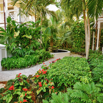 This is an example of a tropical backyard landscaping in Hawaii.