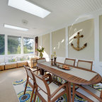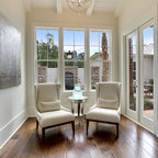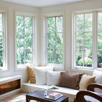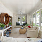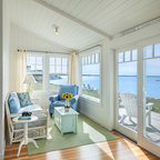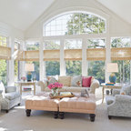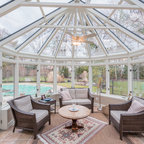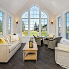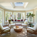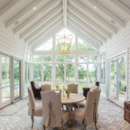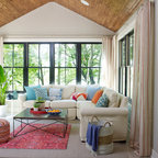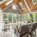 Vaulted Wood Ceiling in White Sun Room Transitional Sunroom