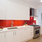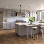 White Full Overlay Kitchen with Alder Briarwood IslandModern Kitchen, Cincinnati
