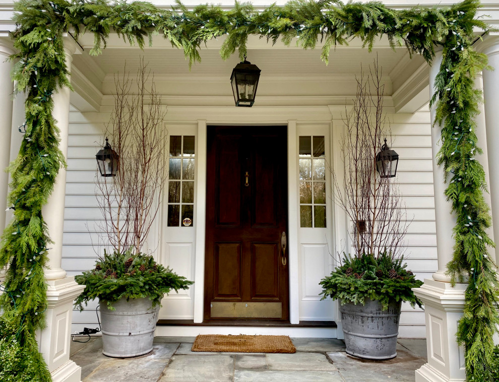 6. Greenery and GarlandsThis elegant woodland-inspired winter entryway by Sweet Dirt Designs features two handsome...