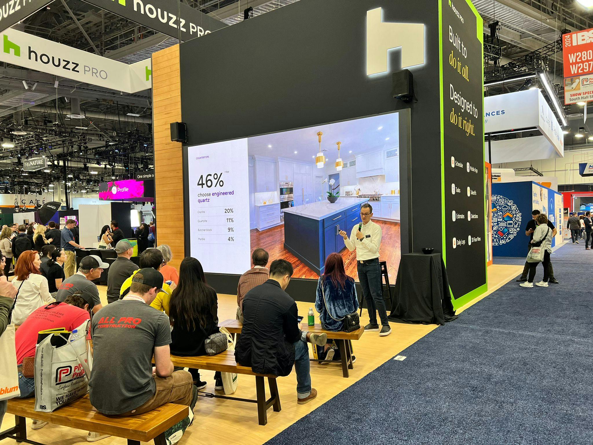 Stop by the Houzz Pro booth #C5224 at IBS and KBIS #N477 at KBIS. We have a full day of amazing events planned starting with on-the-Houzz hot coffee in the morning, and a cold beer at happy hour in the afternoon. Attend live panel discussions with industry experts, participate in hands-on demos, and get a free professional headshot compliments of Houzz. Here’s a sampling of what awaits you at our Houzz booths: