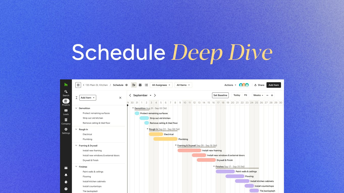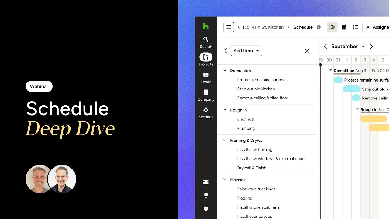 The Houzz Pro Schedule tool is a shareable timeline that helps you and your team coordinate in real time, but it’s so much more too! You can assign tasks to team members and get notified when due dates approach, you can create dependencies for timeline tasks, and the entire timeline can automatically shift as elements are added. In this 30-minute webinar with a demo, you’ll learn all about how the Schedule tool can keep your project on track from beginning to end.