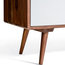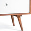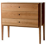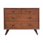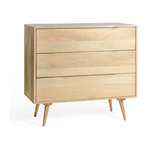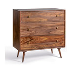 I'm overall very pleased with this dresser, which looks great and seems well-made. It's nice to see furniture at this price point made with solid wood. (Plus, easy to put together--just screw in the legs!) My only caveat is that the drawers are not easy to slide out. You have to grasp inside the circles and pull, and the drawers do not exactly glide. There's a lot of friction. We'll see if this improves with time, and it's far from a dealbreaker, but it's definitely a design flaw.