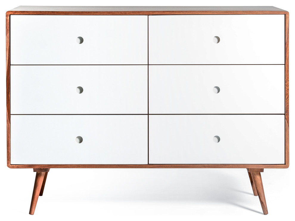 The Ingrid Mid Century Modern Dresser With 6 Drawers, White by MOD is a light wood chest made of quality wooden materials. With a distinctive white finish, this is a perfect 6-drawer chest. The MOD Ingrid Mid Century Modern Dresser With 6 Drawers, White is a dresser with a unique midcentury look, ideal for adding style and storage to your bedroom. This chest has a width of 80 to 89 inches, a depth of 25 inches and up and a height of 80 to 89 inches. Available on Houzz since June 11, 2018 and sold by Houzz, this chest is currently sold out. To decide if the MOD Ingrid Mid Century Modern Dresser With 6 Drawers, White is right for you, check out 1 reviews and 3 questions.