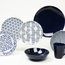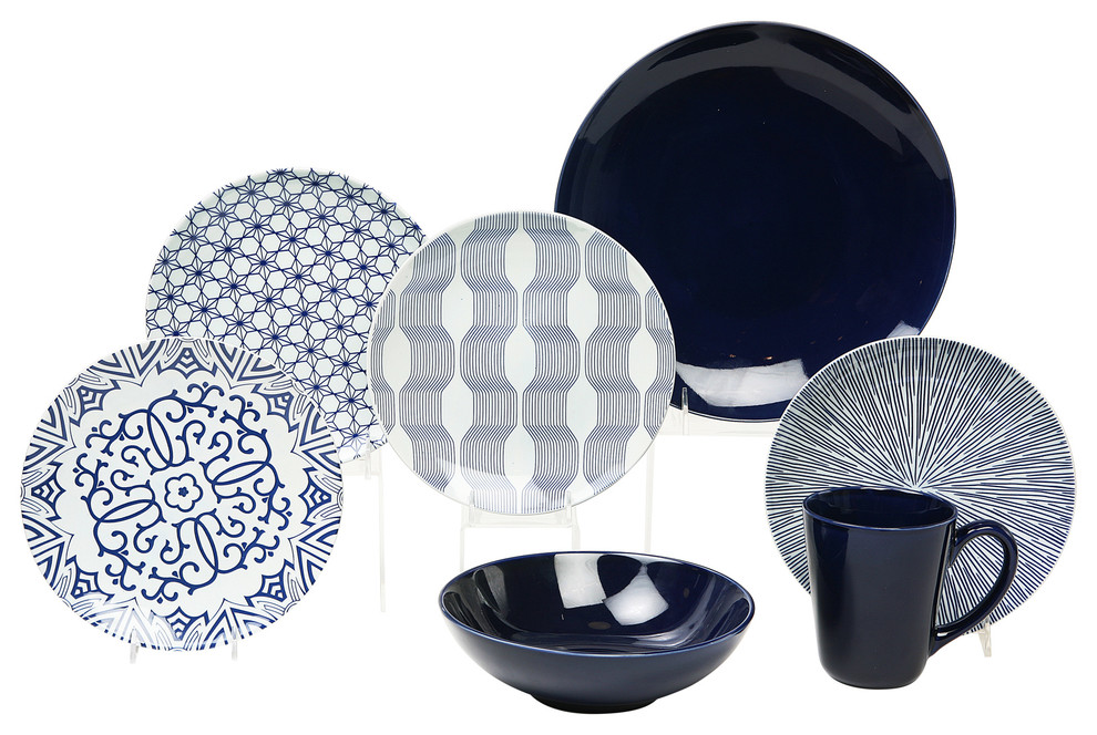 Embrace design and versatility with this 16-Piece Dinner Set, shown here in blue and white. Featuring a different pattern on each of the four salad plates, the collection also includes four dinner plates, four bowls and four mugs. Each piece is This set is dishwasher and microwave safe.