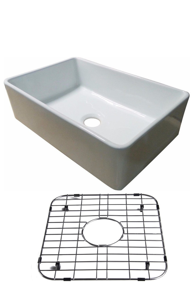30" x 20" x 10" White 30" Contemporary Smooth Fireclay Farmhouse Kitchen Sink fireclay, farm sinks are a throwback to a simpler time. Designed to offer the traditional popular look of an apron farm sink With a contemporary twist. Made of the highest quality solid fireclay to ensure it not only looks great but also lasts for a very long time.