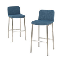 Santino Blue Fabric Bar Stools, Set of 2