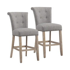 Byron Button-Tufted Counter Stools, Set of 2, Light Gray With Oak Legs
