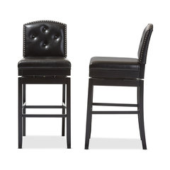 Ginaro Button-Tufted Upholstered Swivel Bar Stools, Set of 2, Brown Faux Leather