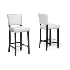Aries Bar Stools With Nailhead Trim, Set of 2, White