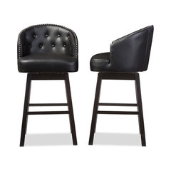 Avril Faux Leather Tufted Swivel Barstool With Nail Heads Trim, Set of 2, Black