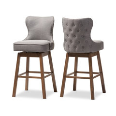 Brown Wood Finishing, Fabric Swivel BarStools, Gray, Set of 2