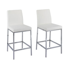 Huntington White Leatherette Bar Stools With Chrome Legs, Set of 2