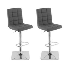 Heavy Duty Gas Lift Adjustable Barstool, Set of 2, Tufted Dark Gray