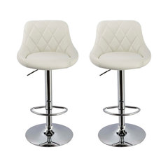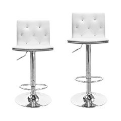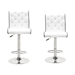 Modern Swivel Bar Stool With Crystals and "Tufted" Look, Set of 2, White