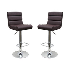 Modern Adjustable Swivel Faux Leather Bar Stools, Set of 2, Brown