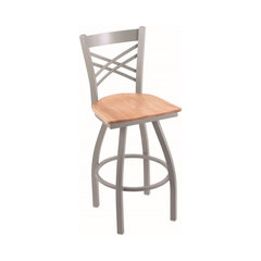 820 Catalina 30" Bar Stool, Anodized Nickel Finish, Natural Oak Seat