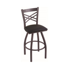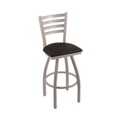 410 Jackie 30" Bar Stool, Anodized Nickel Finish, Black Vinyl Seat, 360 swivel