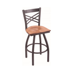 820 Catalina 25" Counter Stool With Pewter Finish, Medium Maple Seat, 360 swivel
