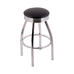 C8C3C Classic Series 25" Counter Stool, Chrome, Ribbed Chrome Ring, Black Vinyl
