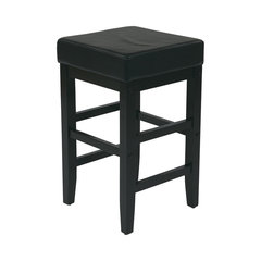 25" Square Black Faux Leather Barstool with Espresso Legs