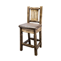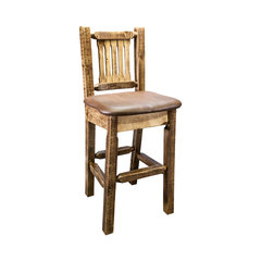 Homestead Bar Stool With Back, Saddle Upholstery, Stain and Lacquer Finish