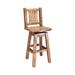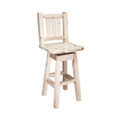 Montana Collection Bar Stool With Back and Swivel, Clear Lacquer Finish