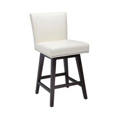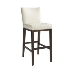 Pembley Leather Stool With Nailhead Trim, Cream, Bar Height