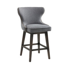 Tufted Back Swivel Stool With Brass Nail Head Trim, Dark Gray, Counter Height