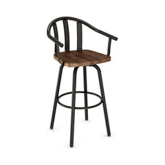 Sloped Arm Swivel Stool With Wood Seat, Counter Seat