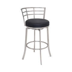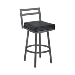 Moniq Metal Swivel Bar Stool, Ford Black Faux Leather and Mineral, 26"