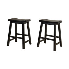 Marcy Black Saddle Wood Counter Stools, Set of 2